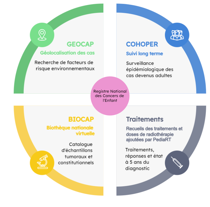 Traitements Le recueil détaillé des traitements est assuré par le Registre National des Cancers de l’Enfant, depuis le financement ANR dans le cadre du Programme Investissement d’Avenir. Ces données de traitements sont complétées par la